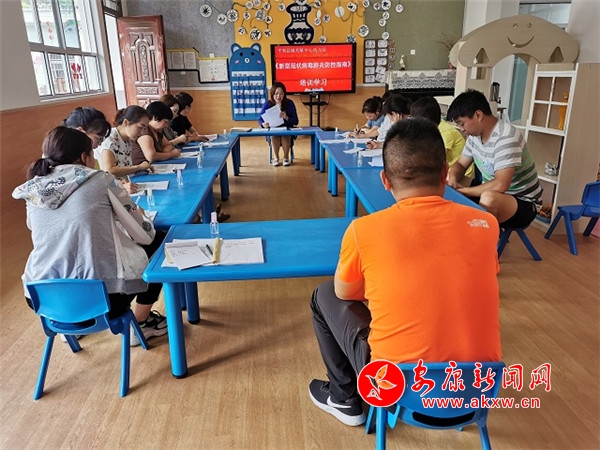 演練前,園領(lǐng)導(dǎo)對該園的“兩案九制”、《幼兒園新型冠狀病毒肺炎防控指南》、師幼心理健康教育等方面進(jìn)行培訓(xùn),詳細(xì)講解此次演練流程,明確人員分工及站位,讓全體成員熟練掌握幼兒晨間入園、下午離園和疫情突發(fā)情況的應(yīng)急預(yù)案處置流程和操作方法。