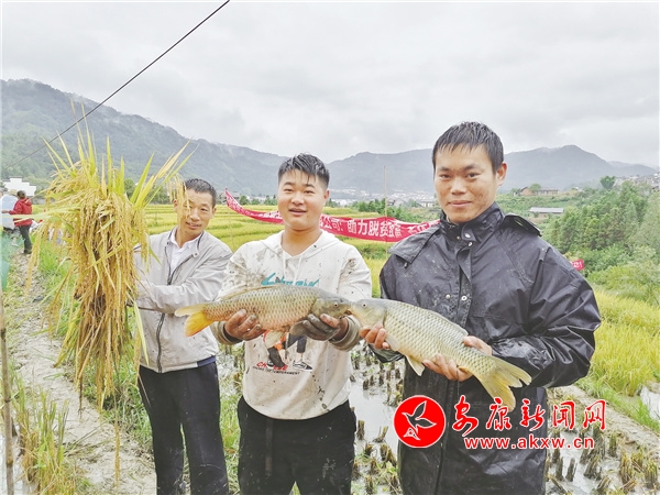 2019年開始,平利縣大貴鎮(zhèn)嘉峪寺村大力發(fā)展集體經(jīng)濟(jì),當(dāng)?shù)啬苋送蹉y在充分挖掘本地資源優(yōu)勢(shì)的基礎(chǔ)上,成立了寶銀種養(yǎng)殖專業(yè)合作社,依托良好的生態(tài)環(huán)境和區(qū)位優(yōu)勢(shì),加之優(yōu)質(zhì)的山泉水,流轉(zhuǎn)土地種植500畝富硒水稻。經(jīng)過一年的發(fā)展,當(dāng)年便收獲了20萬公斤稻谷,也贏得了廣闊的市場(chǎng)。2020年為進(jìn)一步增加收入,王銀便萌生了養(yǎng)稻花魚的想法,組織寶銀種養(yǎng)殖農(nóng)民專業(yè)合作社采取“合作社+貧困戶”的模式,通過統(tǒng)一品種、統(tǒng)一種植、統(tǒng)一管理等方式,開啟“一田兩用、一水雙收”的發(fā)展模式,養(yǎng)殖生態(tài)稻花魚,陸續(xù)投放了20萬尾魚苗。稻因魚而優(yōu),魚因稻而貴。“稻田里養(yǎng)了魚,就不用農(nóng)藥和除草劑了,魚會(huì)吃掉稻田中的害蟲、雜草、掉落的稻花,排出的糞便又能成為水稻生長(zhǎng)的肥料。”王銀說,稻田養(yǎng)魚實(shí)現(xiàn)了“一水兩用、一田多收、稻魚雙贏”。割稻時(shí)節(jié),稻香魚肥慶豐收,稻田里農(nóng)民兄弟們忙著收割打谷、捉魚,田埂旁搭起的臨時(shí)小舞臺(tái)上載歌載舞,歡聲笑語四處洋溢。
