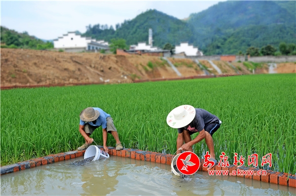 今年以來(lái),為進(jìn)一步提高稻花魚的產(chǎn)量,該村對(duì)稻花魚養(yǎng)殖示范基地進(jìn)行了改造提升,開挖修建了魚凼、魚溝,確保在稻田排水曬田、施化肥、灑農(nóng)藥或者夏季水溫過(guò)高時(shí),魚可施于較深在魚溝、魚凼中。同時(shí)組織農(nóng)業(yè)技術(shù)人員對(duì)稻田養(yǎng)魚戶進(jìn)行集中培訓(xùn),提高養(yǎng)殖戶的種養(yǎng)技術(shù),通過(guò)對(duì)秧苗進(jìn)行減藥減肥和寬行窄距的栽種,減少稻田里的雜草和害蟲,進(jìn)一步提升稻、魚的品質(zhì),有效拓寬增收途徑。