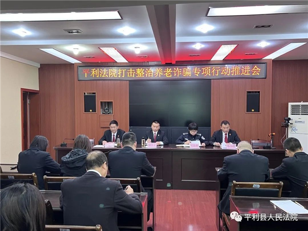 會(huì)上,傳達(dá)學(xué)習(xí)了中央和省、市、縣委相關(guān)文件精神,宣讀了《平利縣人民法院打擊整治養(yǎng)老詐騙專項(xiàng)行動(dòng)實(shí)施方案》,并對(duì)工作專班成立及人員分工作出整體部署。會(huì)議提出,要充分認(rèn)清開(kāi)展打擊整治養(yǎng)老詐騙專項(xiàng)行動(dòng)是貫徹落實(shí)習(xí)近平總書(shū)記重要指示精神的實(shí)際行動(dòng),是廣大人民群眾特別是老年群體的迫切愿望,是保持國(guó)泰民安社會(huì)環(huán)境的實(shí)際舉措,各部門要嚴(yán)格按照任務(wù)分工,持續(xù)展開(kāi)宣傳動(dòng)員,深入進(jìn)行線索摸排,細(xì)化工作措施,強(qiáng)化工作落實(shí),確保專項(xiàng)工作取得實(shí)效。