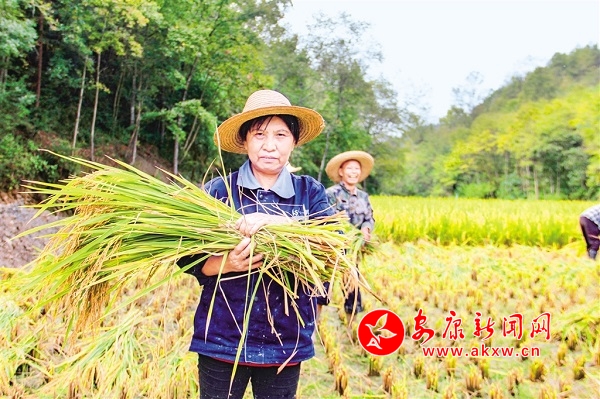 在平利縣老縣鎮(zhèn)蔣家坪村100畝的稻田魚生態(tài)種植養(yǎng)殖基地,負(fù)責(zé)人余治東正帶著村民們收割稻穗、捕撈稻田魚。在稻田的另一旁,縣農(nóng)業(yè)農(nóng)村局的負(fù)責(zé)人也正在對(duì)稻田養(yǎng)魚進(jìn)行測產(chǎn)驗(yàn)收。十幾名干部群眾加入抓魚隊(duì)伍,一條條活蹦亂跳的稻田魚裝滿魚桶。
