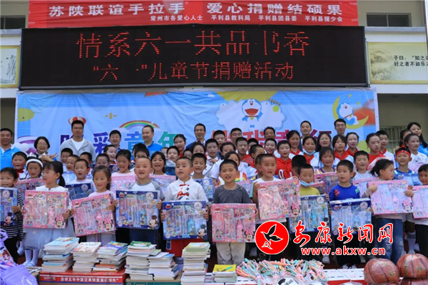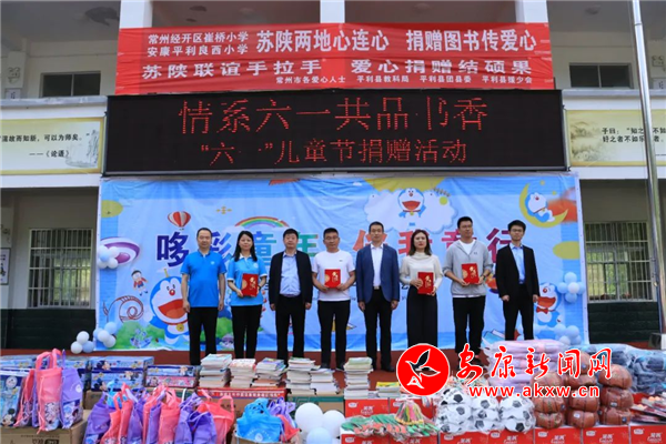 捐贈儀式上,常州經(jīng)開區(qū)崔橋小學捐贈圖書826冊,常州經(jīng)開區(qū)愛心人士捐贈價值10000元的體育、學習用品,平利援少會捐贈價值4000元的愛心大禮包69套,愛心人士孫鈺華捐贈價值4000元的牛奶67箱。
