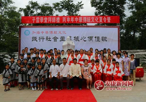 目前,學(xué)校先期開啟中華傳統(tǒng)文化夏令營,已招收50名新生,將用四個(gè)月的時(shí)間實(shí)施“伏羲教育”小學(xué)段的教育改革探索,傳承國學(xué)經(jīng)典,弘揚(yáng)中華優(yōu)秀傳統(tǒng)文化,搭建“修身齊家,構(gòu)建和諧社會(huì)”為宗旨的社會(huì)教育與家庭教育相結(jié)合的新型教育模式。在開營儀式上,石泉“伏羲學(xué)校”的老師、學(xué)生、家長身著民族傳統(tǒng)服裝開展祭孔典禮、拜師儀式、集體誦讀《弟子規(guī)》等形式弘揚(yáng)國學(xué)。