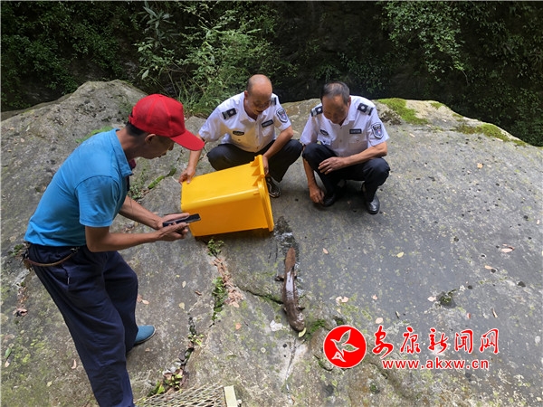 “為了保護(hù)漁業(yè)資源和水生態(tài)環(huán)境,我們今天把這條娃娃魚(yú)放歸到喜河鎮(zhèn)三星潭流域(雁山瀑布景區(qū)安全水域)。這里屬于保護(hù)區(qū),且原生態(tài)自然環(huán)境非常適宜娃娃魚(yú)生長(zhǎng)。”石泉縣農(nóng)業(yè)綜合執(zhí)法大隊(duì)干部劉晨說(shuō)道。