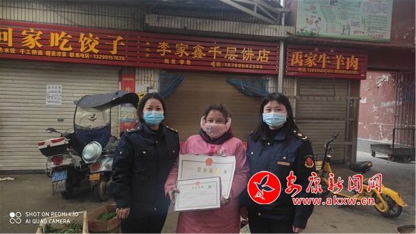 當天,在桃園路、陽光麗城農(nóng)貿(mào)市場,像王玉琴這樣足不出戶收到營業(yè)執(zhí)照的商戶有17家,市場商戶由于生意繁忙,且部分都是年紀較大的老年人,不懂如何辦理營業(yè)執(zhí)照,成了“無證商販”。為了規(guī)范市場經(jīng)營,本著“為人民服務(wù)”的工作態(tài)度,石泉縣市場監(jiān)管局工作人員聯(lián)系市場管理方后,決定主動上門服務(wù)為商戶辦理個體工商戶營業(yè)執(zhí)照,商戶只需要準備一部智能手機和本人身份證即可現(xiàn)場辦理,辦理好后,工作人員將打印好的營業(yè)執(zhí)照送到每一位商戶手中,獲得了商戶們的一致好評。