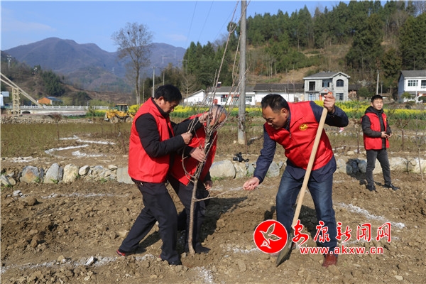全體鎮(zhèn)機(jī)關(guān)干部、工作隊(duì)員和30余名青年志愿者一到中壩村植樹(shù)點(diǎn)就拿起工具,積極投身植樹(shù)活動(dòng)。在活動(dòng)現(xiàn)場(chǎng),按照技術(shù)員的指導(dǎo),大家?guī)兹艘唤M,分工明確、配合默契,揮鍬鏟土、扶植樹(shù)苗、培實(shí)新土,忙得熱火朝天。周邊群眾紛紛加入義務(wù)植樹(shù)隊(duì)伍,經(jīng)過(guò)辛勤勞動(dòng),550余株櫻桃樹(shù)在春風(fēng)里昂然挺立,煥發(fā)出勃勃生機(jī)。為確保植株成活率,林業(yè)技術(shù)人員還進(jìn)行了現(xiàn)場(chǎng)指導(dǎo)。