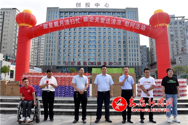 活動(dòng)儀式上,縣創(chuàng)建辦會(huì)同石泉縣茗泉商貿(mào)有限公司等3家愛心企業(yè),向高溫天氣里依然堅(jiān)守工作崗位的環(huán)衛(wèi)職工致以衷心的感謝和崇高的敬意,分別贈(zèng)送茶葉、飲料、礦泉水、毛巾等防暑降溫物品,共計(jì)價(jià)值人民幣22000元,惠及165名環(huán)衛(wèi)職工,充分體現(xiàn)了黨和政府及社會(huì)各界對(duì)環(huán)衛(wèi)職工的關(guān)心關(guān)愛。