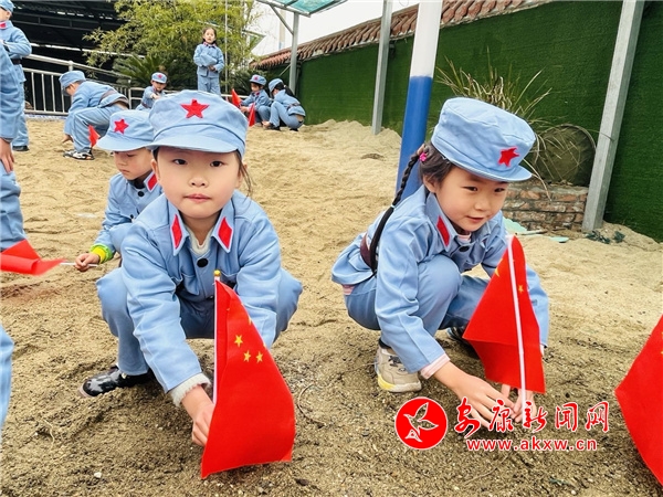 據(jù)了解,本次活動(dòng)基于幼兒的身心發(fā)展階段性特點(diǎn),分為小班聆聽(tīng)故事、中班辨識(shí)黨徽、大班體能體驗(yàn)三個(gè)板塊,旨在激發(fā)幼兒傳承革命優(yōu)良傳統(tǒng)的熱情,讓紅色基因扎根孩子們幼小的心靈;顒(dòng)中,該園教師借助圖片、視頻等載體,向小班幼兒介紹了黨徽、黨旗等標(biāo)識(shí),并解讀了標(biāo)識(shí)的文化內(nèi)涵;在中班組,該園教師通過(guò)通俗易懂的語(yǔ)言,深情講述了吃水不忘挖井人等紅色故事,引導(dǎo)幼兒感受大公無(wú)私、為民服務(wù)的紅色精神,珍惜今天來(lái)之不易的幸福生活;大班幼兒則是在老師的組織下開(kāi)展“重走長(zhǎng)征路”體能體驗(yàn)活動(dòng),通過(guò)“過(guò)草地”“爬雪山”“飛奪瀘定橋”“運(yùn)軍糧”等趣味運(yùn)動(dòng),真切感受紅軍長(zhǎng)征的艱辛和不易,學(xué)習(xí)長(zhǎng)征精神,沿著紅色足跡走好新時(shí)代的“長(zhǎng)征路”。