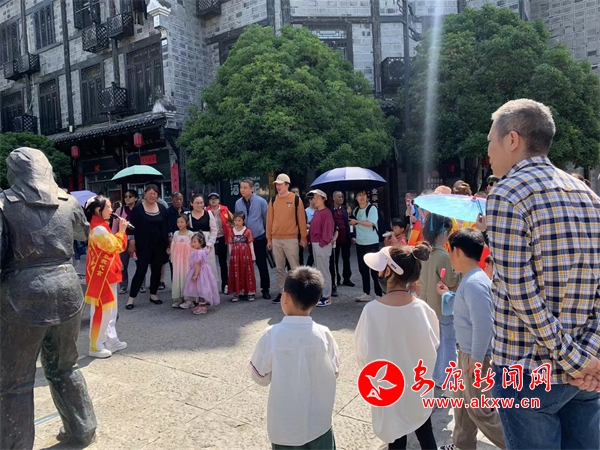 “各位游客大家好,我是自石泉縣城關(guān)一小的小小講解員,歡迎大家跟隨我的腳步游覽石泉秦巴老街”。這五一假日期間從石泉秦巴老街里傳來的朗朗童聲,來自“小小講解員·童音話石泉”——石泉縣全域旅游紅領(lǐng)巾講解員培訓(xùn)班的小朋友們用稚嫩且熟練的話語、自信的神態(tài)向往來游客們介紹了石泉老街東西城門、石泉縣衙、禹王宮、江西會館以及老街上的美食,小小講解員各個儀態(tài)大方、表達清晰、發(fā)揮自如,贏得了游客們駐足圍觀,時不時傳來陣陣掌聲和夸獎。
