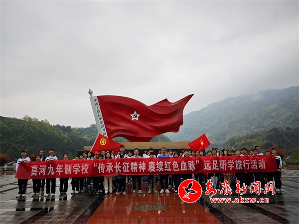 活動(dòng)中,該校師生沿著公路有序行進(jìn),途中相互鼓勵(lì)打氣,順手撿走路邊垃圾,用實(shí)際行動(dòng)保護(hù)家鄉(xiāng)的綠水青山,彰顯中學(xué)生良好的精神風(fēng)貌。經(jīng)過2個(gè)小時(shí)的徒步行走,師生順利到達(dá)終點(diǎn)喜河鎮(zhèn)紅色文化廣場(chǎng)。