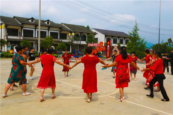 石泉縣池河鎮(zhèn)五愛村村民正在村廣場自發(fā)組織跳廣場舞。龔仕建 攝