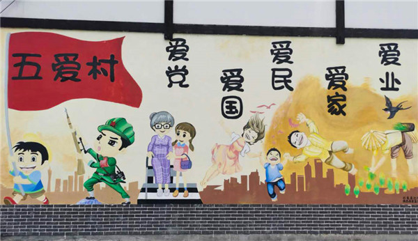 位于五愛村的一處文化墻。張昊 攝