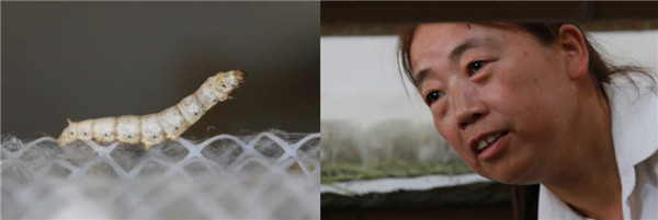 池河鎮(zhèn)新興村四組村民劉小蘭在查看蠶吐絲情況(拼接照片)。龔仕建 攝