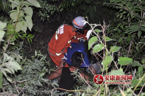 摩托車失控三人墜崖 旬陽(yáng)消防緊急救援