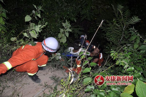 摩托車失控三人墜崖 旬陽消防緊急救援