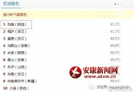 安康新聞網(wǎng)訊(通訊員 梁慧)連日來,“旬陽”牌烤箱火力全開,溫度一再飆升,據(jù)中央氣象臺發(fā)布的全國氣溫實況排名中,旬陽縣以41.1℃排名全國第一。