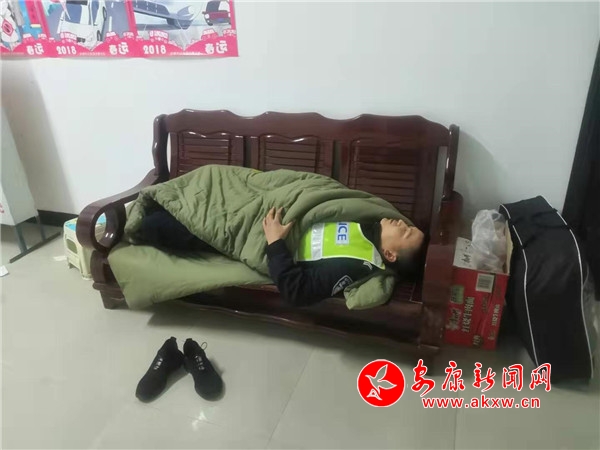 在神河中隊(duì),全體民警迅速歸隊(duì)守護(hù)一方平安。原定于正月初八結(jié)婚的崔鵬程做出推遲婚期的決定,妻子屈曼不僅支持,也在第一時(shí)間趕到了神河鎮(zhèn)中心衛(wèi)生院的工作崗位上。小崔白天負(fù)責(zé)交通要道口湖北等外來(lái)車輛的排查篩查,晚上還要加班整理各類報(bào)表,同時(shí)兼顧日常的交管業(yè)務(wù),連續(xù)多日的嚴(yán)寒導(dǎo)致其患上重感冒,為了不影響工作,屈曼在中隊(duì)辦公室為小崔掛上了點(diǎn)滴。在神河高速路口設(shè)置的檢疫站上,中隊(duì)民警路紀(jì)煒全天候值守,淋著小雨患上風(fēng)寒感冒出現(xiàn)發(fā)燒癥狀后,在同事的多次勸說(shuō)下才去縣醫(yī)院檢查治療,病情稍有好轉(zhuǎn),立即向領(lǐng)導(dǎo)申請(qǐng)返回崗位。
