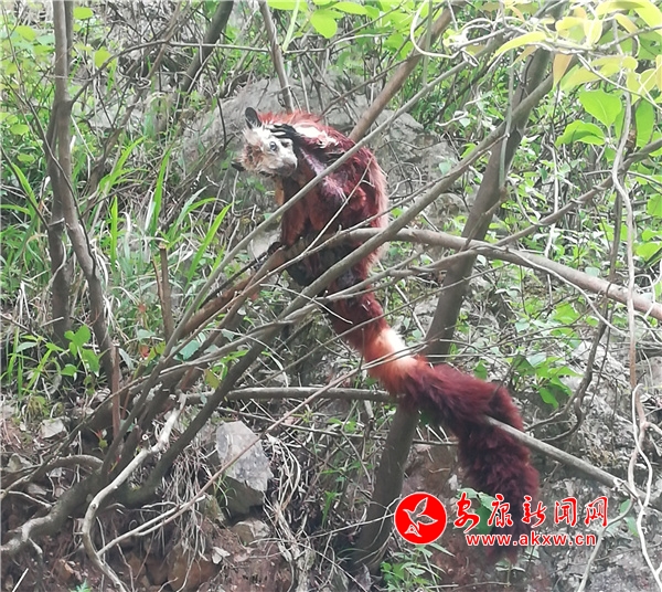 石章明第一時(shí)間聯(lián)系了縣林業(yè)局,工作人員立即趕到護(hù)林站,看見(jiàn)這個(gè)小動(dòng)物全身毛色發(fā)亮,棕紅色與白色相間,拖著一條酷似松鼠一樣的大尾巴,頭又圓又小,眼睛大,眼圈赤栗色,體長(zhǎng)1米多,尾巴長(zhǎng)度超過(guò)體長(zhǎng)。經(jīng)過(guò)現(xiàn)場(chǎng)查看、圖片比對(duì),并和市林業(yè)局聯(lián)系,最終確認(rèn)這就是國(guó)家有益、有重要經(jīng)濟(jì)、有科學(xué)研究?jī)r(jià)值的“三有”保護(hù)野生動(dòng)物——飛狐。隨即,林業(yè)工作人員對(duì)這只飛狐進(jìn)行了全面體檢救治。