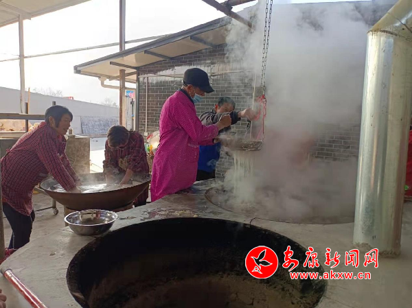 該村的紅薯粉采用傳統(tǒng)工藝,制作復(fù)雜,全制作過程不添加任何添加劑,加工的粉條色澤晶亮,食用口感順滑,勁道耐煮,讓人百吃不厭,引來了鎮(zhèn)內(nèi)鎮(zhèn)外很多顧客前來購買。該村黨支部抓住機(jī)遇,積極探索產(chǎn)業(yè)發(fā)展和群眾增收的出路,采取“支部引領(lǐng)+集體合作社+農(nóng)戶”共同發(fā)展的思路,借助產(chǎn)業(yè)發(fā)展扶持政策,村集體經(jīng)濟(jì)合作社決定建粉條加工廠。該村采用集體經(jīng)濟(jì)紅薯粉條廠主要通過收購農(nóng)戶、務(wù)工等方式帶動農(nóng)戶增收,按照紅薯粉市場價每公斤30元,可帶動11戶43人增收,集體經(jīng)濟(jì)可增收20余萬元。