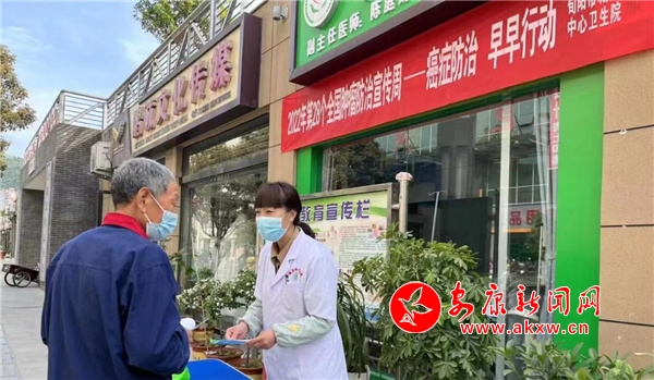 本網(wǎng)訊(通訊員 陳子賢)2022年4月15日至21日是第28個全國腫瘤防治宣傳周。為進一步提高全社會癌癥防控意識,促進廣大居民了解癌癥預防知識,主動干預癌癥高危因素,營造全民防癌抗癌的良好氛圍。4月20日早上,旬陽市城關中心衛(wèi)生院走進下菜灣社區(qū),聯(lián)合社區(qū)衛(wèi)生室開展 “癌癥防治 早早行動”為主題的全國腫瘤防治宣傳周活動。