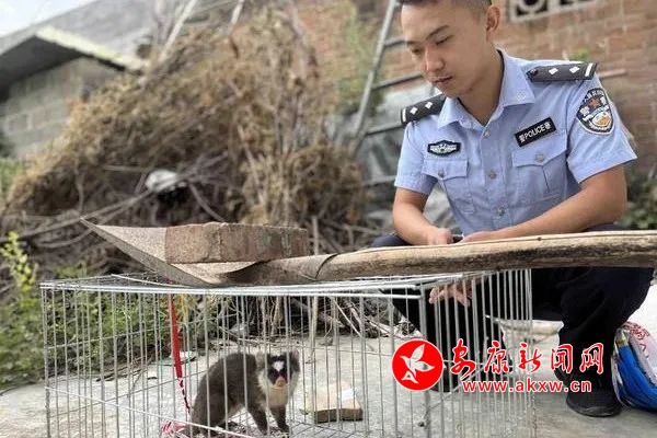 當日中午,呂河派出所接到群眾報警稱,“在其家中鐵籠里關(guān)了一只像果子貍的野生動物,請求幫助。”接警后,值班民警迅速帶隊前往處置。到達現(xiàn)場后,民警看到了這只“不速之客”,是一只灰褐色皮毛的小動物,臉似狐,嘴似豬,花白面,時不時上躥下跳,身體狀況還不錯。民警經(jīng)過仔細比對和觀察,并經(jīng)林業(yè)部門工作人員確認,發(fā)現(xiàn)該動物并非果子貍,而是一只鼬獾,屬于國家三級保護動物。
