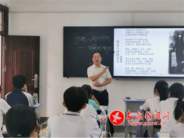 “這節(jié)課很精彩!梁老師從朗讀指導、作家簡介、情感領悟上引導大家學習,循序漸進掌握,很有節(jié)奏和特色。”老師講課結(jié)束后,這位“不速之客”走到講臺前,說明來意,并對堂課作了認真點評。
