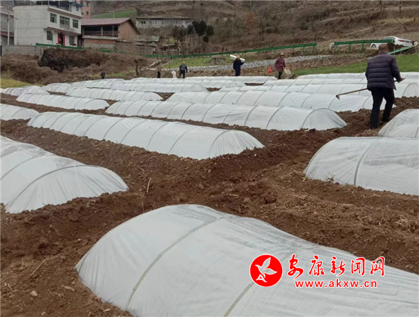 走進(jìn)梨灣村的烤煙育苗基地,煙農(nóng)們分工合作,正忙著拌土、澆水、撒種、打拱、覆膜……一派熱火朝天的繁忙景象。
