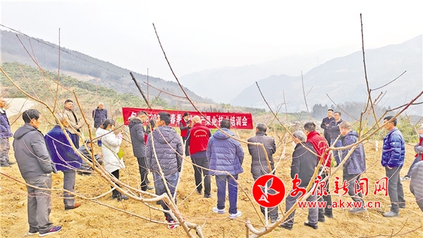 在城關(guān)鎮(zhèn)李家臺村的百畝果園里,果樹正待發(fā)芽,園區(qū)前期已進行了苗木的澆水、施肥,農(nóng)技人員正手把手教授剪枝、病蟲害防治等農(nóng)業(yè)知識,為今年果園的開花坐果和豐產(chǎn)豐收打基礎(chǔ)。李家臺村共栽植了果園1200畝,預計果實五月中旬能夠陸續(xù)成熟上市。