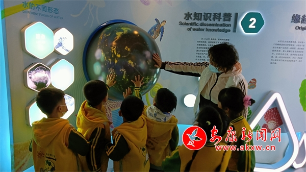 小朋友們走進水文化館,立即被神奇的“生命之源”所吸引,精致的浮雕、科技感濃重的電子屏幕等展項都牢牢讓小朋友們注目觀看。通過觀看水文化科普系列動漫宣傳視頻,使小朋友們近距離體驗到水文化的魅力和水利科技科普。解說員積極和小朋友互動,通過現(xiàn)場問答、操作互動電子屏等多種方式,讓孩子及家長們了解了我國的水歷史、水狀況等內(nèi)容,更加清楚地了解關(guān)于漢江和旬河的知識。同時引導(dǎo)小朋友們樹立從小“愛水、惜水、節(jié)水”意識,倡導(dǎo)規(guī)范用水、合理用水,用實際行動讓節(jié)約用水成為一種新時尚。