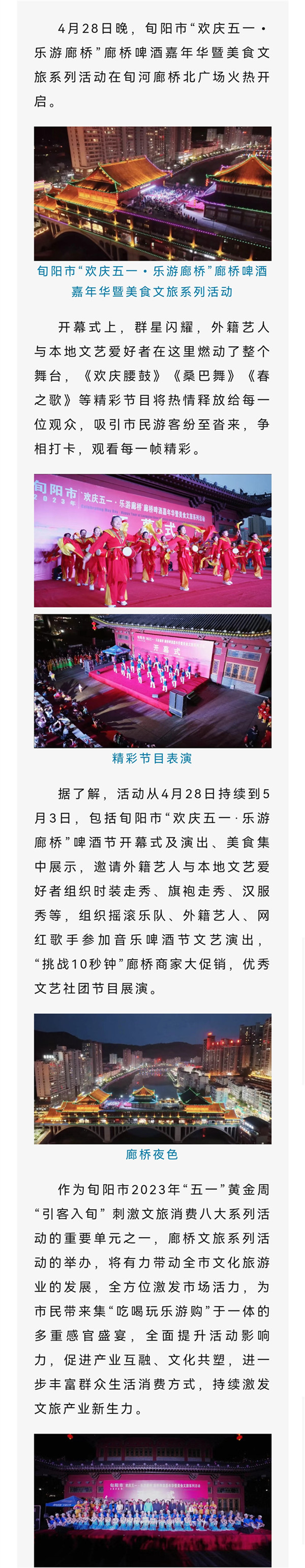 旬陽市“歡慶五一·樂游廊橋”廊橋啤酒嘉年華暨美食文旅系列活動(dòng)火熱開啟