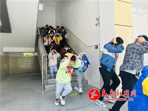 片刻之后,要求師生疏散撤離教學(xué)樓的指令發(fā)出,各班學(xué)生在老師的組織下沿指定路線撤離。行進(jìn)中,大家降低身體重心躬身前行,有的用雙手捂住頭部,有的用書本遮蓋頭頂,以最快的速度向安全疏散點(diǎn)轉(zhuǎn)移,整個疏散撤離過程快速而有序,僅用時1分40秒,600余名師生便安全撤離至學(xué)校操場,實(shí)現(xiàn)了預(yù)期演練目標(biāo)。