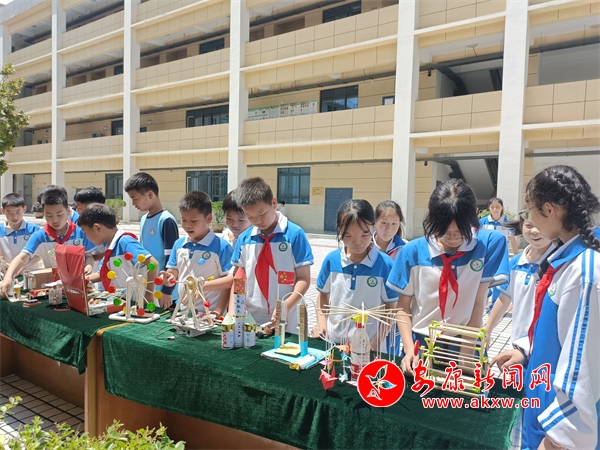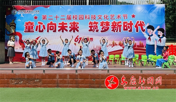 舞臺中央“童心向未來,筑夢新時代”一行醒目的紅色標(biāo)題映入眼簾。少先隊員納新儀式上,黨員教師和輔導(dǎo)員老師共同為新入隊的孩子們佩戴上鮮艷的紅領(lǐng)巾,新隊員們在大隊輔導(dǎo)員的帶領(lǐng)下莊嚴(yán)地宣誓。各班、各社團精心編排的文藝節(jié)目依次上演,精彩的節(jié)目引起陣陣歡呼,掌聲響成一片。隨后,還組織了學(xué)生書畫和科技小制作展覽,大家不時駐足觀看,燦爛的笑容匯成校園里一道亮麗的風(fēng)景。