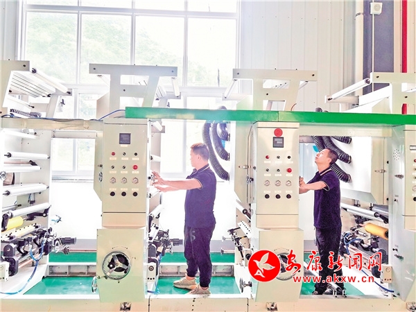 6月27日,在旬陽市生物基可降解材料產業(yè)園,技術人員在安裝調試水墨印刷機。鄒一銘 攝