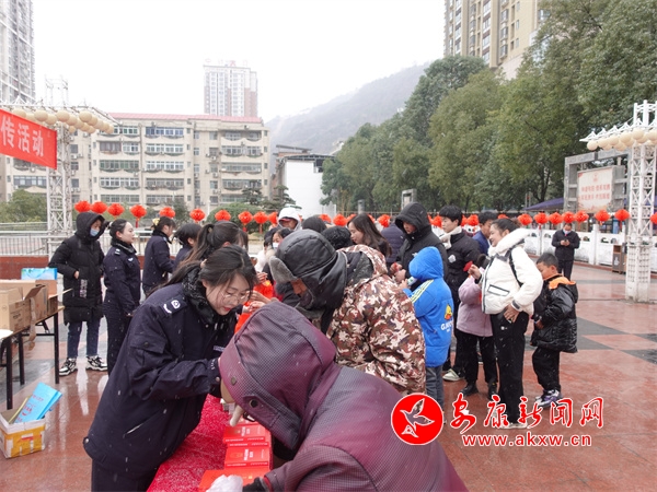 本網(wǎng)訊(通訊員 馮媛 黃倩)“飛雪連天迎春到,法治燈謎鬧元宵 。”2月23日上午,旬陽市祝爾慷廣場,雖大雪紛飛、天寒地凍,但人頭攢動、熱鬧非凡。走近一看,原來這里正在舉辦旬陽市2024年元宵節(jié)法治燈謎有獎競猜暨法治宣傳活動。