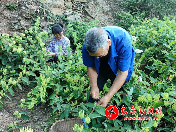 近日,旬陽市關(guān)口鎮(zhèn)西坡村成了一片忙碌而充滿希望的金色海洋,到處可見一簇簇、一蓬蓬的金銀花綴滿枝頭,青翠的綠葉、淡黃的花瓣隨風(fēng)起舞,陣陣微風(fēng)吹過,花朵的清香撲鼻而來。