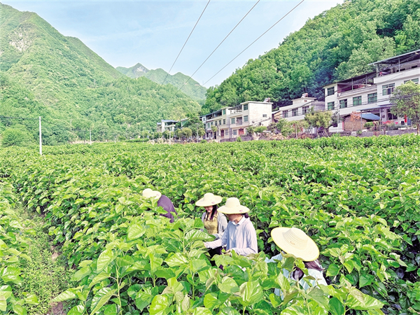 5月的旬陽市麻坪鎮(zhèn),山嵐輕拂、萬物競發(fā)。當(dāng)記者滿懷期許地步入這個旬陽西北部的產(chǎn)業(yè)重鎮(zhèn)時,只見麻坪河兩岸的千畝煙田里,青翠的煙苗整齊列隊,農(nóng)人們躬身移栽,汗水滴落處皆是希望。海拔千米的五龍山茶園內(nèi),茶簍在村婦的腰間輕晃,靈巧的指尖在葉片間翻飛,嫩芽與笑語在山間回蕩。李家河村的蠶室里,春蠶沙沙食桑,細(xì)密的韻律如致富歌謠在耳畔響起,蠶農(nóng)們穿梭桑園,指尖捻出絲路綿長。