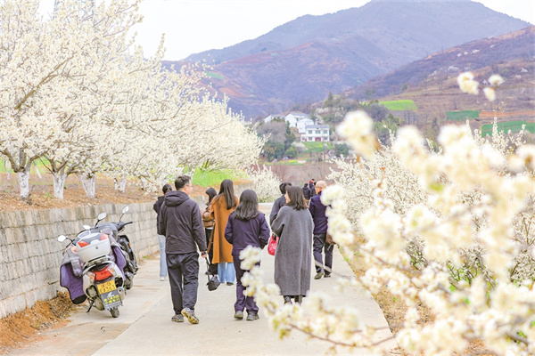 春日的旬陽市段家河鎮(zhèn),櫻桃花海隨風(fēng)翻涌,白墻黛瓦的民居錯落有致,石板路蜿蜒穿村而過。果農(nóng)們忙著修枝疏蕾,游客們駐足拍照打卡,一幅“產(chǎn)業(yè)興、鄉(xiāng)村美、百姓……