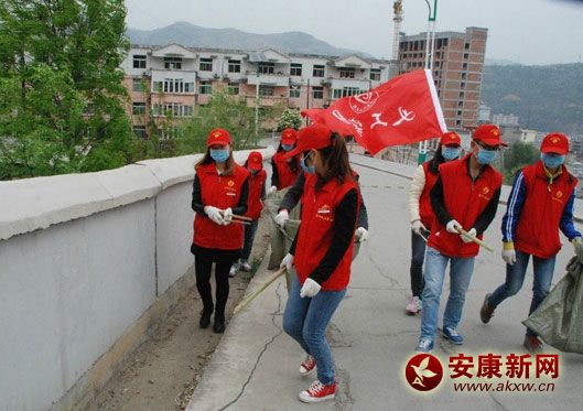 安康新網(wǎng)訊 通訊員 吳昌根:4月6日,太極城森林公園里游人如織,一群身穿紅色上衣的青年男女在這里撿垃圾,為雙創(chuàng)做義務(wù)宣傳,吸引了廣大游客的注意,旗幟上“義……