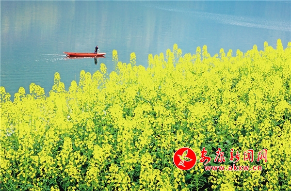 瀛湖的春天,立春很久才姍姍而來(lái)。春風(fēng)拂過(guò)山間林木,樹木爆芽吐綠。起初是一樹一樹的鵝黃,帶著幾分詩(shī)意。沒(méi)幾天,便是翡翠般的新綠,煥發(fā)著勃勃的生機(jī)。藍(lán)天麗日下,一池湖水碧波萬(wàn)頃,如一面巨大的鏡子鋪展在天地間。頭頂?shù)乃{(lán)天白云,四周的紅花綠樹,全都靜臥湖底。魚兒開始產(chǎn)子,孕育后代,來(lái)來(lái)往往的游船載來(lái)四面八方的游客,火了周邊的農(nóng)家樂(lè),鼓了村民的腰包。