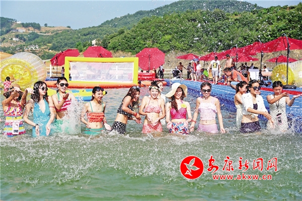 瀛湖的初夏,萬(wàn)千變化。清晨,山和水還在夢(mèng)中酣睡,一輪紅日從東面湖的盡頭沐浴而出,爬上山頭,霞光染紅了湖水,染紅了天空,湖面顯得更加清幽。傍晚,落日熔金,給群山鍍了一層金邊。此時(shí),群鳥歸隱,群魚入眠。江風(fēng)攪動(dòng)湖水,湖面波光瀲滟,明麗動(dòng)人。晚歸的漁民搖著一葉扁舟在寂靜的湖面上飄蕩,成為畫中最美的風(fēng)景。習(xí)習(xí)涼風(fēng)也吹散了白日的暑熱,舒適愜意,是休閑避暑的好去處。若遇雨天,天地間扯起絲絲銀線,水天一色,如煙如霧,籠罩在瀛湖上空。那若有若無(wú)輕煙一樣的雨霧輕盈地飄蕩在湖面上、群山間,翠屏山莊上的亭臺(tái)水榭、湖心碧螺島上的螺峰塔,全都沐浴在水蒙蒙的輕紗中,如夢(mèng)似幻。“西塞山前白鷺飛,桃花流水鱖魚肥。青箬笠,綠蓑衣,斜風(fēng)細(xì)雨不須歸。”此時(shí),湖里的魚兒成群結(jié)隊(duì)地游出水面透氣,正是釣魚的最佳時(shí)機(jī),湖邊不少垂釣愛好者正興致勃勃地冒雨釣魚,完全不顧雨已打濕了衣服。湖中,一葉葉漁舟和游船在雨中漫游,幽幽絲竹之聲從游船中飄出,像游走在煙雨迷蒙的江南水鄉(xiāng)。