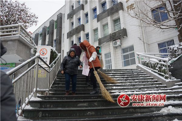 安康新聞網(wǎng)訊(通訊員 杜波兒 楊云波)2018年 1月4日,迎來了新年的第一場大雪,為百姓們帶來美麗雪景的同時也給來院就診的患者帶來諸多不便。當你在賞雪景,曬美照時,鎮(zhèn)坪縣醫(yī)院院辦七點多就來到醫(yī)院,組織行政、后勤醫(yī)護人員掃雪除冰,全力保障患者安全就醫(yī),確保醫(yī)療工作的正常運轉(zhuǎn)。