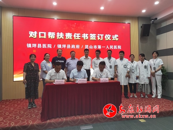 本網(wǎng)訊(通訊員 杜波兒 楊明榮)根據(jù)國家衛(wèi)生計生委等5部門《關(guān)于印發(fā)加強三級醫(yī)院對口幫扶貧困縣縣級醫(yī)院工作方案的通知》以及《關(guān)于開展2019-2020年蘇陜醫(yī)院對口幫扶工作的通知》(陜衛(wèi)醫(yī)發(fā)〔2019〕52號)的文件要求,為深入貫徹落實江蘇、陜西省委、省政府關(guān)于蘇陜對口幫扶工作,5月25日,鎮(zhèn)坪縣委常委、副縣長蔡小安率鎮(zhèn)坪縣衛(wèi)健局、縣醫(yī)院赴江蘇昆山市第一人民醫(yī)院對接對口支援工作,并簽署了對口支援責(zé)任書。昆山市衛(wèi)健委副主任朱敏等相關(guān)領(lǐng)導(dǎo)參加活動并發(fā)表講話。昆山市第一人民醫(yī)院、鎮(zhèn)坪縣衛(wèi)健局、縣醫(yī)院、疾控中心相關(guān)人員負參加簽字儀式。
