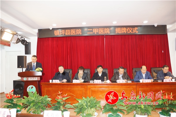 儀式上,市衛(wèi)健委宣讀了《關(guān)于授予鎮(zhèn)坪縣醫(yī)院二級(jí)甲等綜合醫(yī)院的批復(fù)》;楊彬和蔡小安為鎮(zhèn)坪縣醫(yī)院“二級(jí)甲等”醫(yī)院揭牌。儀式上,蔡小安、楊彬分別致辭,對(duì)鎮(zhèn)坪縣醫(yī)院獲得“二甲”醫(yī)院稱(chēng)號(hào)表示祝賀并寄予深切厚望,希望鎮(zhèn)坪縣醫(yī)院全體職工繼續(xù)發(fā)揚(yáng)艱苦奮斗、勇于拼搏的精神,抓住機(jī)遇,乘勢(shì)而上,在改革中探索,在管理上創(chuàng)新,在業(yè)務(wù)上求精,辦好鎮(zhèn)坪人自己的醫(yī)院,辦成老百姓滿意的醫(yī)院,為助力健康扶貧做出更大貢獻(xiàn)。陳文乾對(duì)鎮(zhèn)坪縣醫(yī)院以二甲創(chuàng)建為抓手,加強(qiáng)醫(yī)療質(zhì)量安全管理,落實(shí)醫(yī)療核心制度,實(shí)現(xiàn)了醫(yī)院零糾紛的好成績(jī),是2019年濃墨重彩的一筆。更加堅(jiān)定了對(duì)口支援鎮(zhèn)坪縣醫(yī)院的決心和信心,并對(duì)緊密型醫(yī)共體建設(shè)和與鎮(zhèn)坪縣的醫(yī)養(yǎng)聯(lián)合體提出了意見(jiàn)和合理化建議。