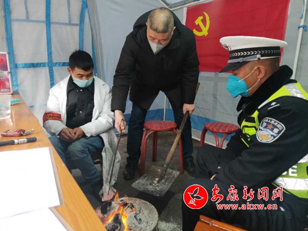 除了悉心照顧值班的年輕同志,陳曉華對(duì)出入卡點(diǎn)的行人也非常細(xì)心,在過(guò)往人員等待登記、查驗(yàn)證件的間隙,陳曉華便提著熱水壺、拿著杯子給他們倒上一杯熱水。見(jiàn)到有小孩在車上哭鬧,他就拿一些點(diǎn)心糖果送給他們,遇到脾氣急躁的人,他便走上前去陪他們說(shuō)話聊天,安撫他們的情緒,最終讓很多情緒激動(dòng)的人都微笑著離開(kāi)了卡點(diǎn)。