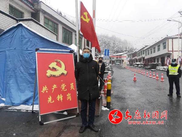 前往值守點(diǎn)的當(dāng)天,天氣突變,鵝毛般的大雪漫天飛舞。值守點(diǎn)位于縣城最北邊的山頂上,氣溫降至0度以下,盡管大家都添加了保暖衣,換上了厚衣服,但依然感覺(jué)渾身瑟瑟發(fā)抖,雙頰凍得隱隱作痛。作為東溝埡卡點(diǎn)黨員先鋒崗中黨齡最長(zhǎng)、年齡最大的黨員,陳曉華主動(dòng)要求參加首班值守。按照要求,值勤崗哨必須24小時(shí)不離人,盡管室外崗哨兩側(cè)都有高清探頭,在室內(nèi)完全可以監(jiān)控進(jìn)出的車輛和行人,但他始終堅(jiān)守在室外的哨廳,維護(hù)卡點(diǎn)秩序、疏導(dǎo)通行車輛、引導(dǎo)行人登記。年輕的同志讓他進(jìn)屋休息,他說(shuō):“大家都在忙,我也不能閑著嘛。既然來(lái)了,就不能偷懶。”