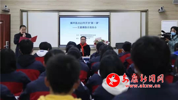 本網(wǎng)訊(通訊員 廖香妮)2月21日中午,由鎮(zhèn)坪縣教育體育和科技局、共青團(tuán)鎮(zhèn)坪縣委員會主辦,鎮(zhèn)坪縣初級中學(xué)承辦的鎮(zhèn)坪縣2022年開學(xué)第一課——王庭德勵志報(bào)告會在鎮(zhèn)坪縣初級中學(xué)五樓會議室舉行,全縣15所中小學(xué)校5000多名學(xué)生線上收看活動直播,報(bào)告會由縣教育體育和科技局黨委書記、局長陸翔主持。