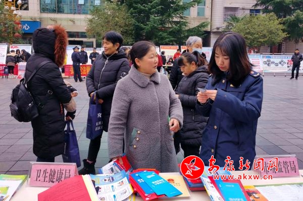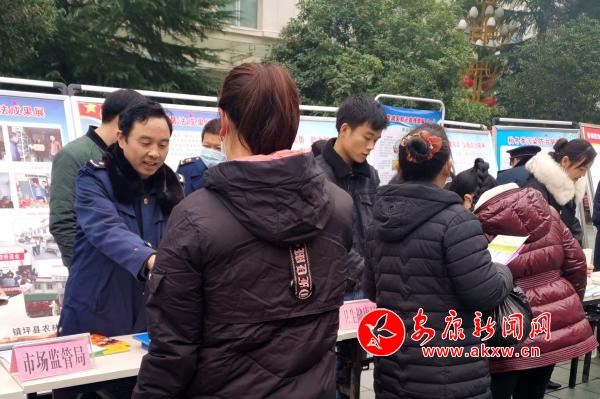 啟動(dòng)儀式結(jié)束后,32個(gè)相關(guān)部門圍繞“弘揚(yáng)憲法精神,建設(shè)法治鎮(zhèn)坪”的宣傳主題,按照統(tǒng)一安排,在鎮(zhèn)坪縣中心廣場集中開展宣傳活動(dòng)。在做好憲法宣傳的同時(shí),鎮(zhèn)坪縣市場監(jiān)管局結(jié)合自身職能職責(zé),通過設(shè)立宣傳咨詢臺(tái)、懸掛標(biāo)語、擺放展板、發(fā)放宣傳資料等方式,開展了市場監(jiān)管系統(tǒng)法律法規(guī)的宣傳和咨詢活動(dòng),大力宣傳《食品安全法》《藥品管理法》《消費(fèi)者權(quán)益保護(hù)法》《特種設(shè)備安全法》等法律法規(guī)知識,積極向廣大群眾發(fā)放宣傳資料,熱情耐心地向咨詢?nèi)罕娦v食品藥品安全、偽劣產(chǎn)品鑒別等法律法規(guī)知識,并告知群眾一些消費(fèi)注意事項(xiàng),提高群眾的識假辨假能力和依法維權(quán)意識。