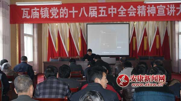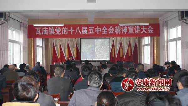 安康新聞網(wǎng)訊 (通訊員 周洪波 張景凡) 為深入學習宣傳貫徹黨的十八屆五中全會精神,切實把廣大干部群眾的思想和行動統(tǒng)一到全面深化改革的決策部署上來,近日,瓦廟鎮(zhèn)召開黨的十八屆五中全會精神宣講大會,鎮(zhèn)、村全體干部及駐鎮(zhèn)單位負責人共計85參會。