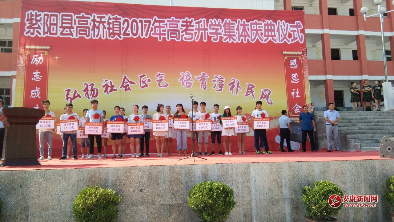 安康新聞網(wǎng)(通訊員 劉成軍)為切實貫徹落實黨的十八大以來關(guān)于優(yōu)良黨風(fēng)帶政風(fēng)促民風(fēng)的部署要求,進一步優(yōu)化民風(fēng)引領(lǐng)社會文明進步,弘揚優(yōu)秀傳統(tǒng)文化、厚植發(fā)展軟實力,大力推進“誠、孝、儉、勤、和”新民風(fēng)建設(shè)。8月2日早晨,由紫陽縣高橋鎮(zhèn)黨委、政府牽頭,在高橋中學(xué)操場隆重舉行了該鎮(zhèn)首場2017年高考升學(xué)集體慶典儀式。鎮(zhèn)領(lǐng)導(dǎo)班子成員、全鎮(zhèn)今年的準大學(xué)生、家長、親友、同學(xué)、教師及社區(qū)居民共同參加了慶典儀式。