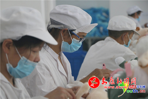 玩具廠還吸納了11名男性村民投身毛絨玩具生產加工。中國青年網(wǎng)記者 張博 攝
